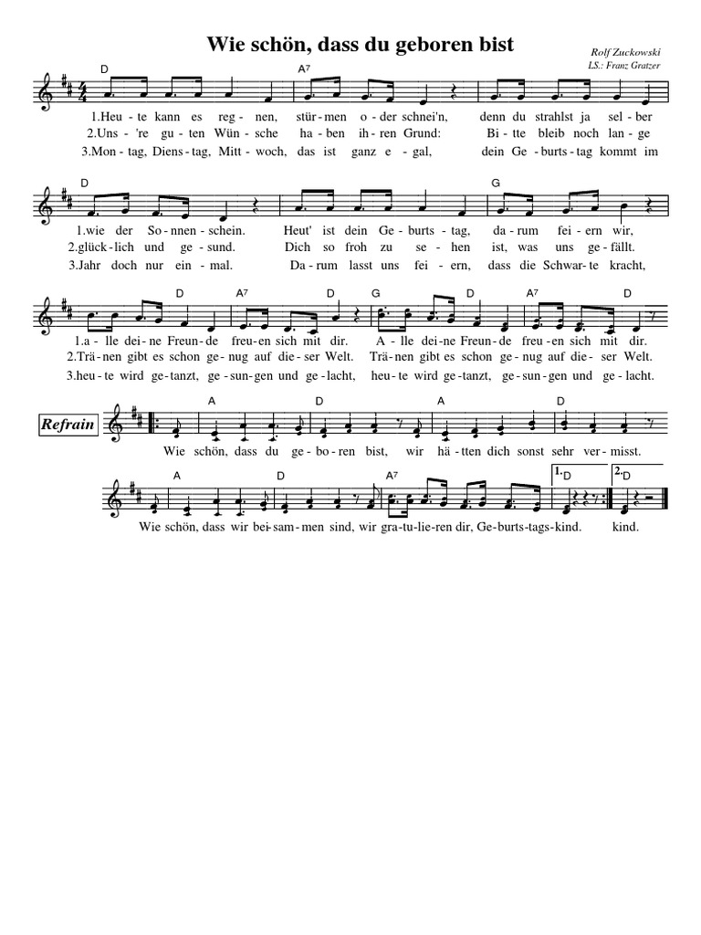 It s the german happy birthday song wie schön dass du geboren bist. Jürgen fastje 100 217 views. Licensed to youtube by umg on behalf of universal music family entertainment and 3 music. Es ist das bekannte kinderlied wie schön dass du geboren bist. Rolf zuckowski wie schön dass du geboren bist lyric video duration. Wie schön dass du geboren bist von rolf zuckowski text ergänzt von ursula dümmer. übersicht vorherige seite nächste seite drucken.