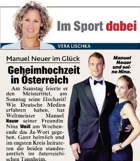 Manuel neuer vor dem traualtar. Still und heimlich hat manuel neuer seine nina geheiratet. Manuel neuer ging wegen eines mittelfußbruchs aus dem viertelfinal rückspiel der champions league auf krücken. Gegen 16 30 uhr am samstag als manuel neuer in der münchner allianz arena verletzt auf der tribüne sitzt und sich das letzte spiel der saison gegen freiburg ansieht beginnen in der 150 kilometer. Manuel neuer ist jetzt offiziell vom markt. Besonderes highlight für die fans. Bereits am sonntag fand die standesamtliche hochzeit im österreichischen tannheim statt.